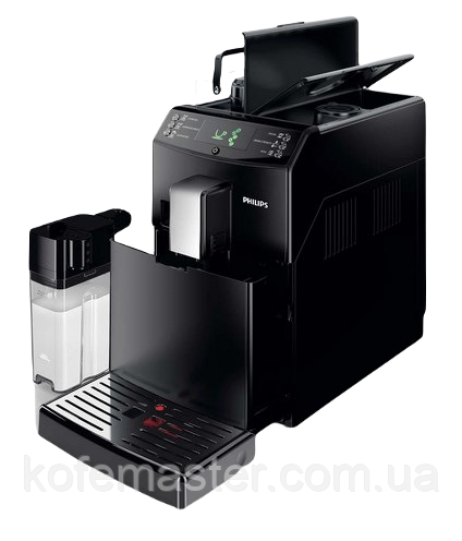 Автоматична кавоварка Philips HD8834. На дисплеї відображаються символи, а не написи, що спрощує використання, можна регулювати порції по об’єму води та міцності, робить капучіно одним натисканням, зйомний молочник для зручного зберігання.